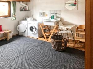 From the terrace you can enjoy panoramic views of the Zugspitzmassiv Mountain Range. Each log cabin comes with a fully equipped kitchen including a dishwasher and a spacious living room with tiled stove.