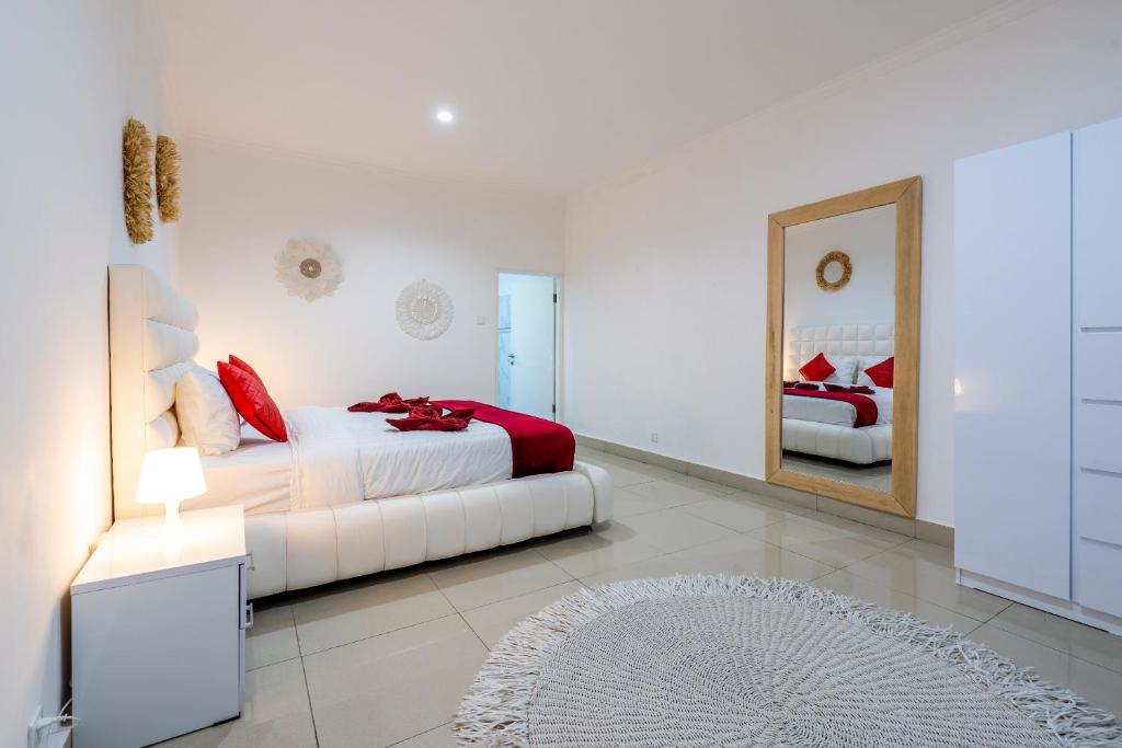 Esta villa con aire acondicionado consta de 6 dormitorios, una sala de estar, una cocina totalmente equipada con nevera y cafetera, y 5 baños con ducha y artículos de aseo gratuitos. Hay toallas y ropa de cama en la villa.
