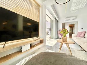 Cette villa avec climatisation se compose de 3 chambres, d'un salon, d'une cuisine entièrement équipée avec un réfrigérateur et une machine à café, ainsi que de 3 salles de bains avec une douche et des articles de toilette gratuits. Des serviettes et du linge de lit sont à disposition.
