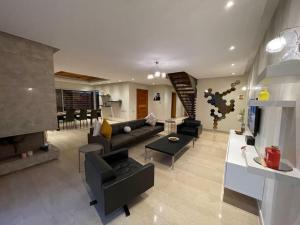 Cette villa avec climatisation se compose de 4 chambres, d'un salon, d'une cuisine entièrement équipée avec un réfrigérateur et une bouilloire, ainsi que de 5 salles de bains avec un bidet et une douche. Une télévision à écran plat avec les chaînes du satellite est à votre disposition.