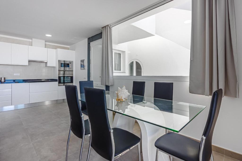 The spacious holiday home features 2 bedrooms, 2 bathrooms, bed linen, towels, a flat-screen TV with streaming services, a dining area, a fully equipped kitchen, and a terrace with sea views. Guests can enjoy a meal on an outdoor dining area while overlooking the pool views. The accommodation is soundproof.