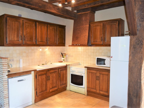Cuisine équipée, salon-séjour (3 canapés), salle de bain, salle d’eau, 2 WC.