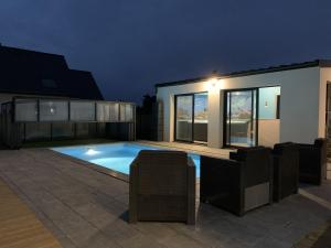 L’établissement Maison 10 pers en bord de mer avec piscine chauffée toute l'année, spa et hamman dispose d’un bain à remous.