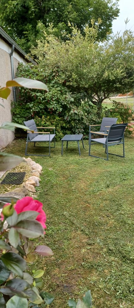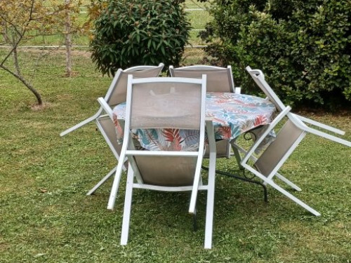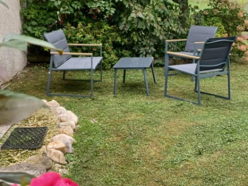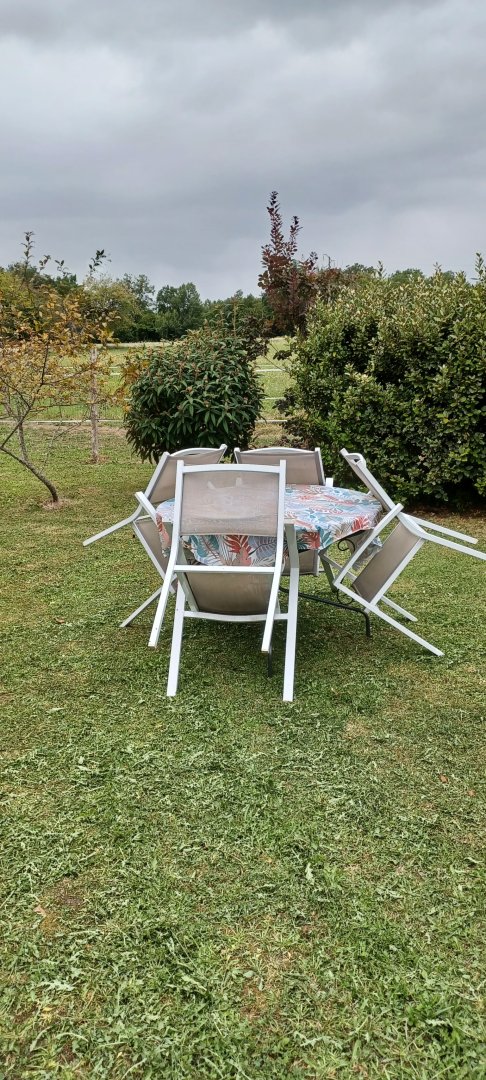 - à l'extérieur : salon de jardin, parasol, transats, barbecue