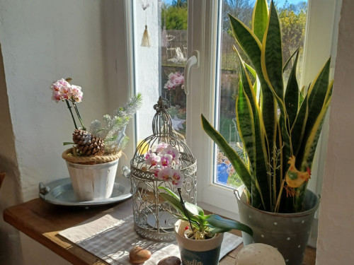 Tout est aménagé de façon à ce que tout le monde se sente comme chez soi. J'accorde beaucoup d'importance à la décoration cosy et douillette d'intérieur. À la belle saison vous pouvez profiter du jardin et des fleurs et l'hiver de la chaleur douce et réconfortante du poêle. La maison de famille très ancienne invite au repos et à la détente dans un environnement paisible (campagne, fleurs, bois, paysage …)