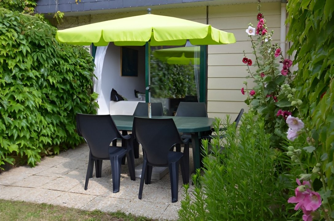 - jardinet clos avec terrasse équipée d'un salon de jardin