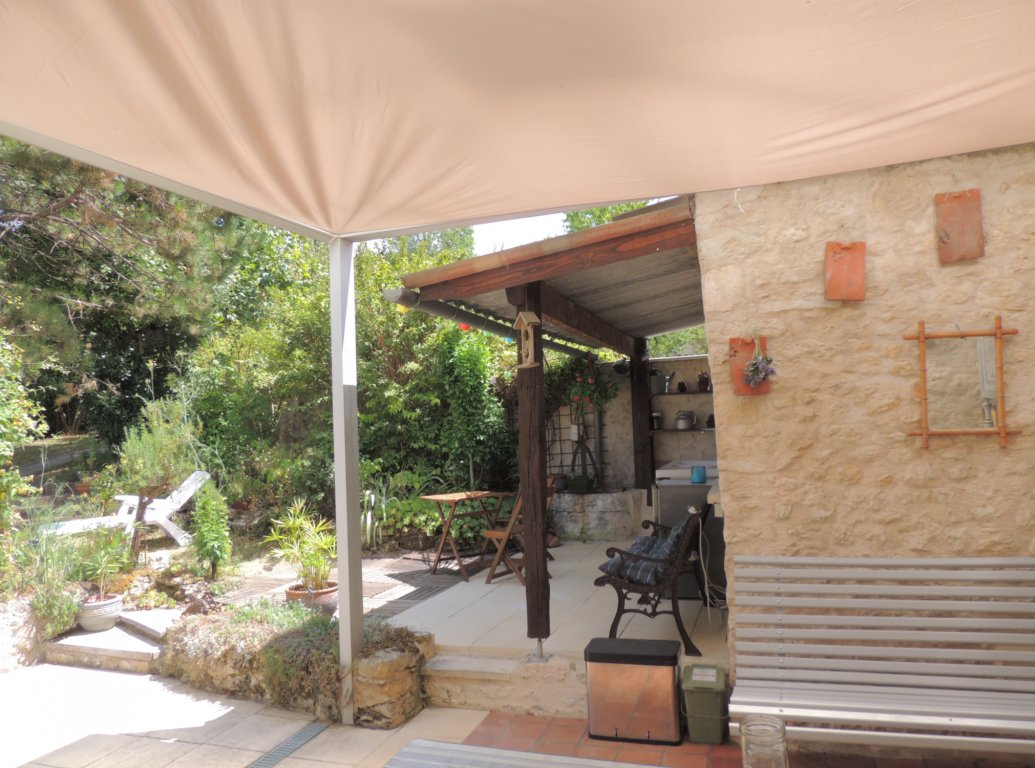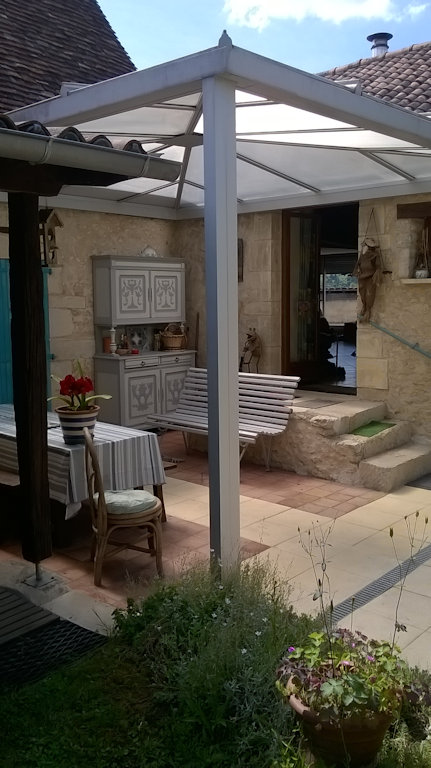 • véranda ouverte, orientée au nord-est, donnant sur le jardin, équipée en salle à manger d’été avec barbecue, évier, …