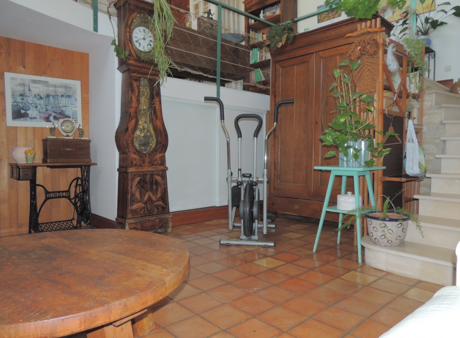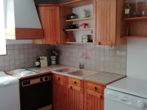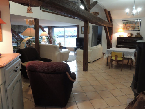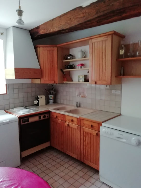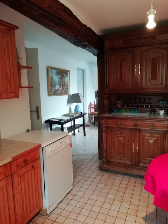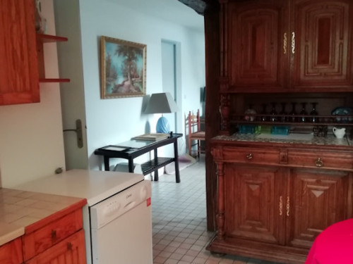 • salle à manger ouverte sur cuisine intégrée de 25 m², avec plaques électriques, four électrique, réfrigérateur-congélateur, lave-vaisselle, lave-linge, cafetière électrique, grille-pain, autocuiseur, vaisselle pour 8 personnes, batterie de cuisine complète …(lave-vaisselle, lave-linge et réfrigérateur ont été changés récemment)