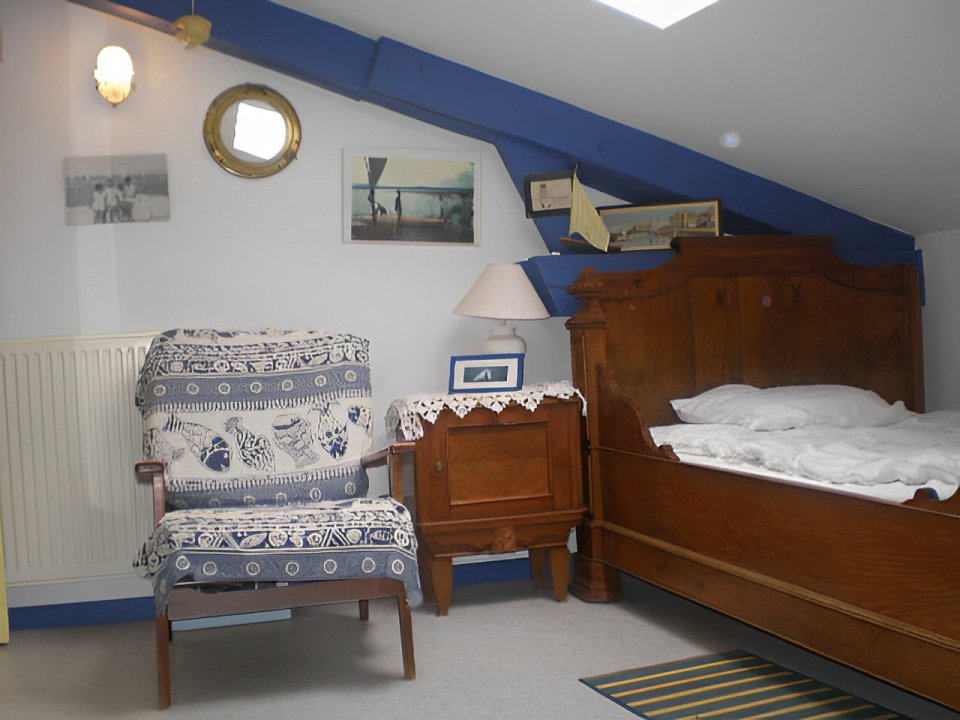 • la chambre du marin avec un lit de coin de 120cm et deux lits à étage de 80cm, une petite armoire, un coin penderie. Elle est éclairée par un velux ouvrant à l’ouest
