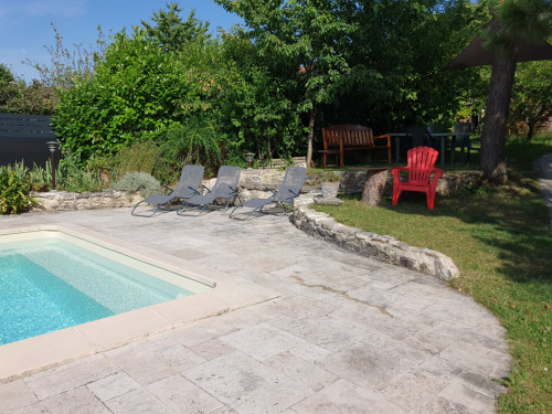 • piscine privative enterrée de 8 x 4 m, traitée au sel avec plages aménagées et transats à disposition, une douche extérieure solaire