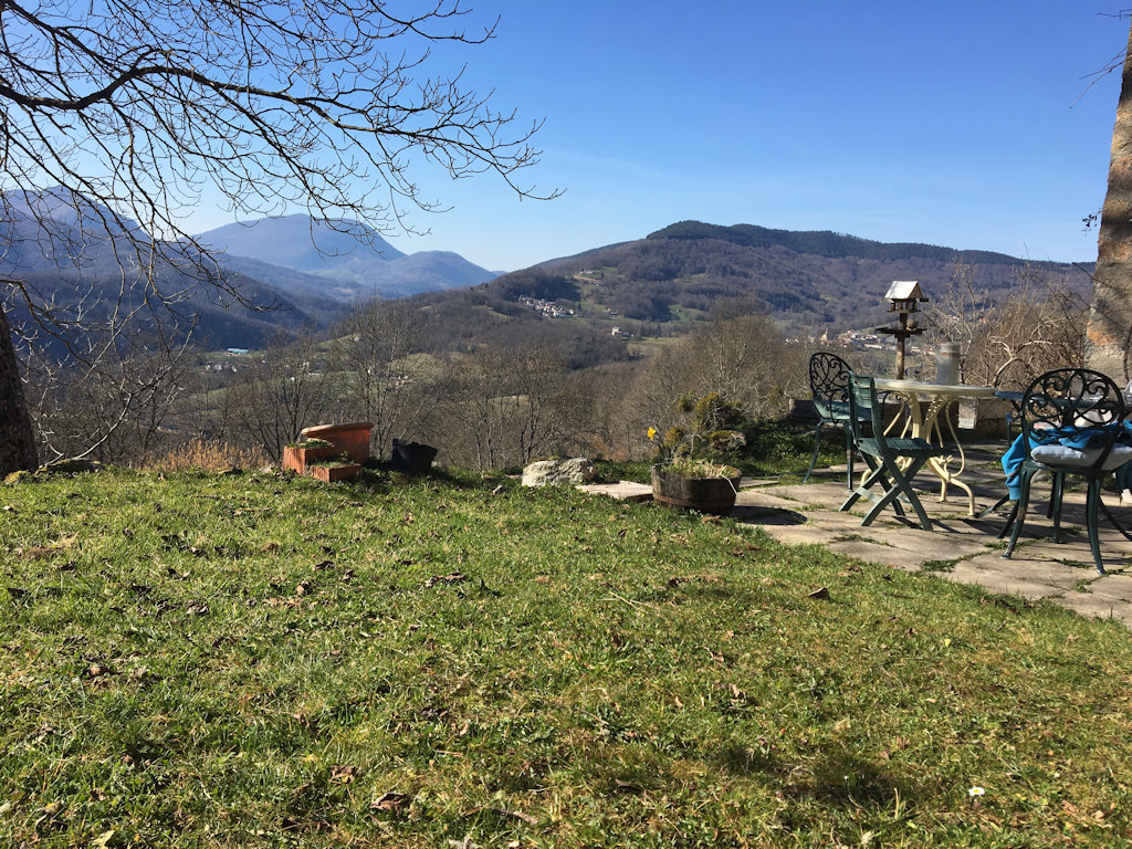 - une terrasse ensoleillée avec vue sur la vallée et le Mont-Valier, ainsi que la forêt, table et chaise d’extérieur, barbecue, un étendoir à linge …