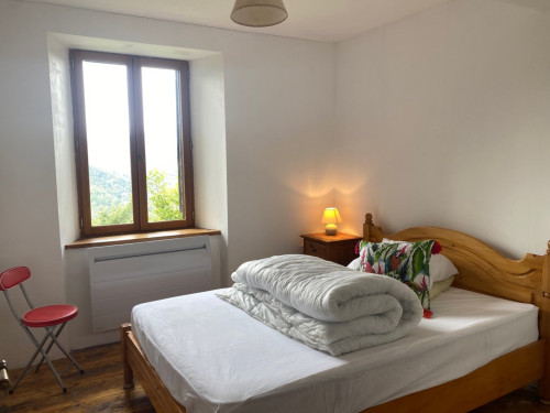 - une chambre avec un lit en 140 et une armoire, une table de chevet, un radiateur