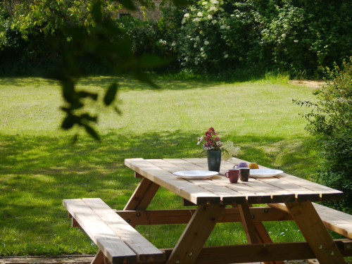 Petit escalier pour entrer dans la maison ; jardin non clos. Animaux acceptés sous certaines conditions (1 animal) ; 5 € / j en supplément : nous contacter à l'avance