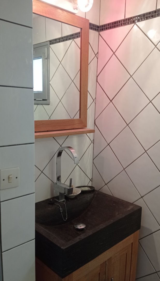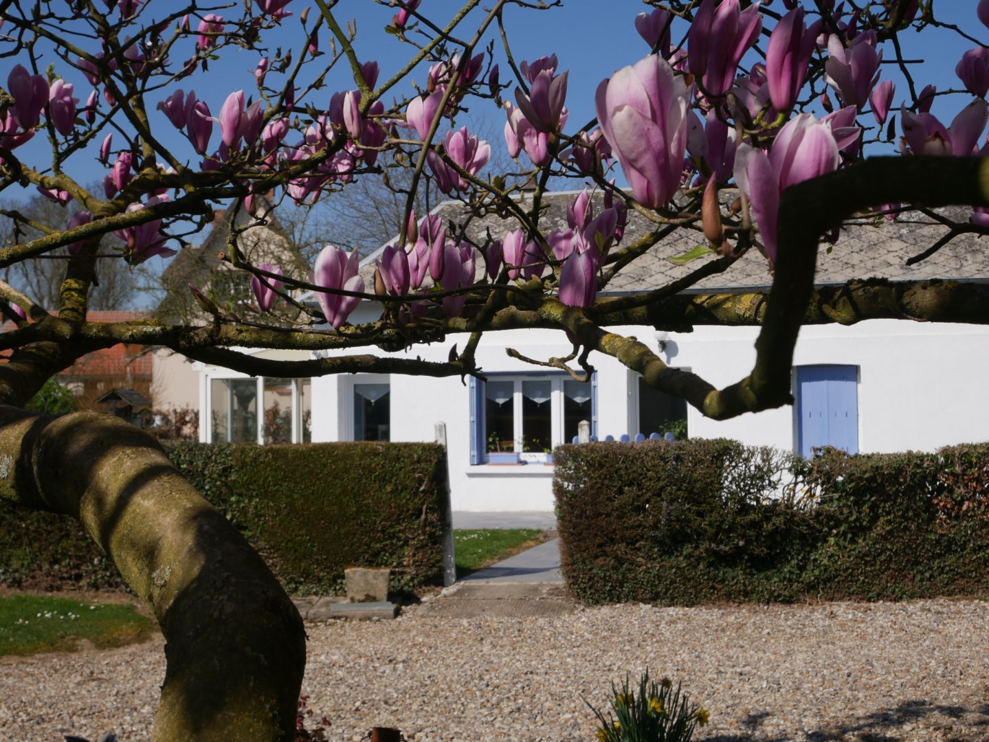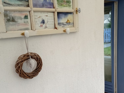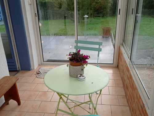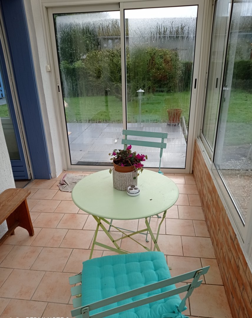 Le gîte est très lumineux, on y entre par une petite véranda avec une petite table de jardin et 2 chaises, 2 chaises de bébés, et un lave-linge.