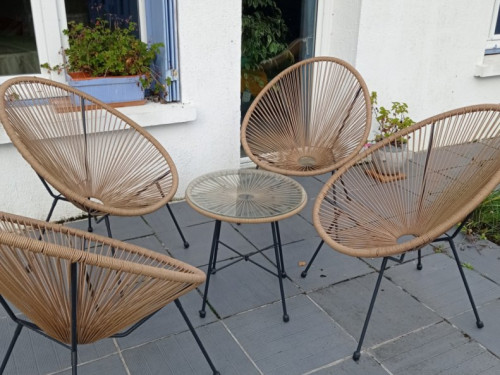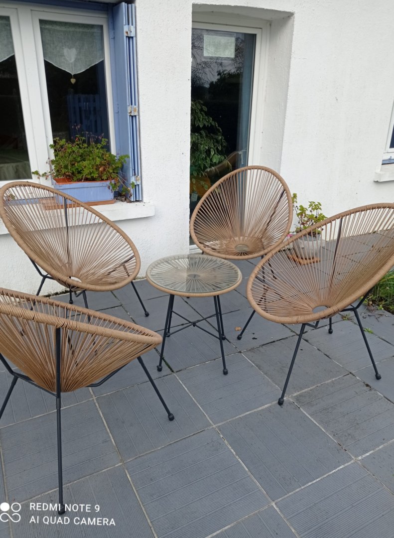 La maison dispose d'un espace clos, une terrasse, une salon de jardin, table et chaises, parasol, barbecue électrique.