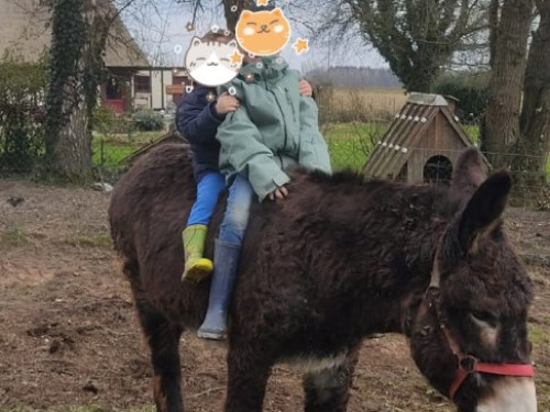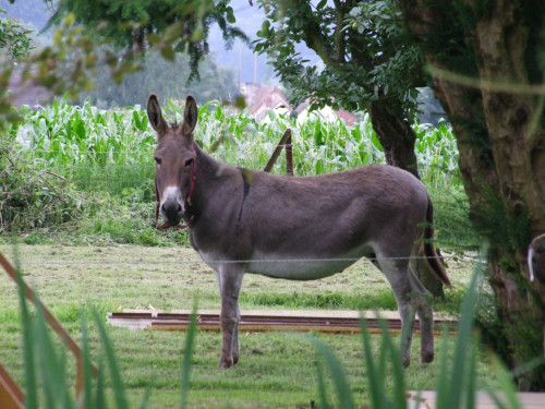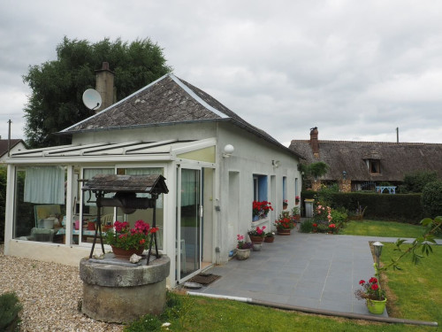 Charmante petite maison de plain-pied, située dans un environnement de verdure, à la campagne, sur une propriété de 8600 m², avec des ânes, des poules, le coq chante.