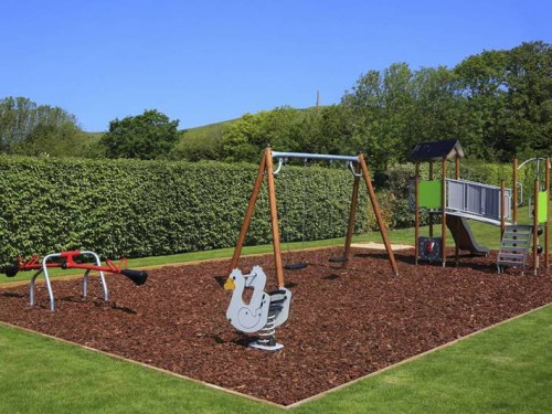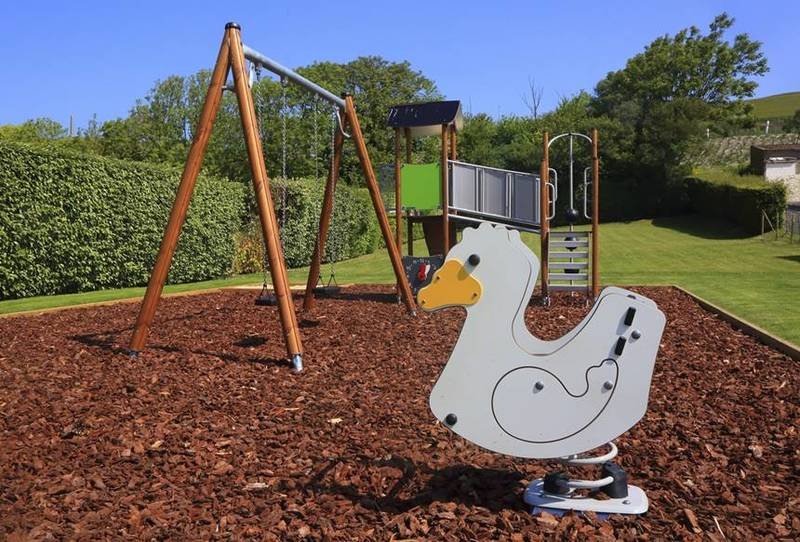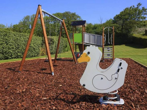 Aire de jeux pour enfants : accès direct depuis le jardin du gîte au grand parc de l’hôtel de 1000 m² avec aire de jeux pour enfants et deux boulodromes.