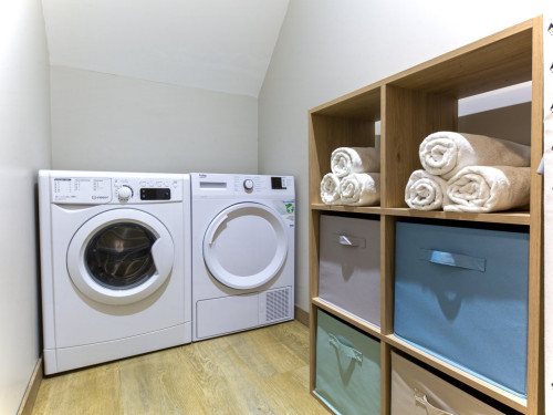 Buanderie : buanderie équipée de lave-linge, sèche-linge, fer à repasser et rangements.