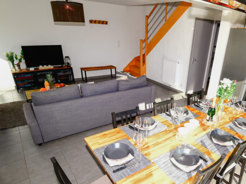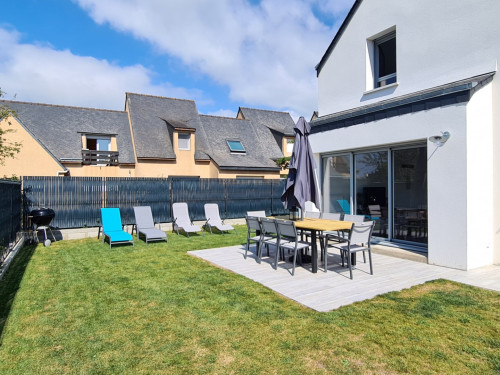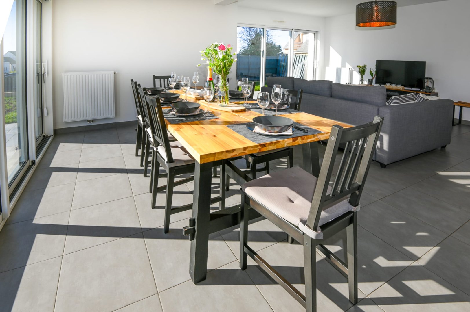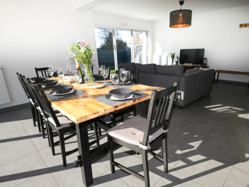 Maison de vacances à Plouharnel comprenant 4 chambres, un grand salon séjour, une cuisine aménagée et fonctionnelle, un jardin clos avec barbecue.