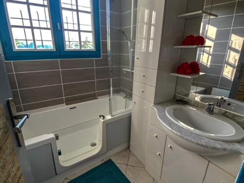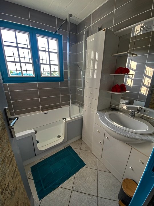 Cette location de vacances est ensuite caractérisée par une cuisine lumineuse 13m² avec accès direct à la terrasse. A l’extérieur, vous ne vous lasserez pas de ces moments passés dans le salon de jardin et aurez l’occasion de vous délecter d’une pièce de bœuf de Salers ou d’une autre viande appétissante d’Auvergne cuisinée au barbecue.