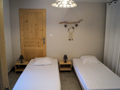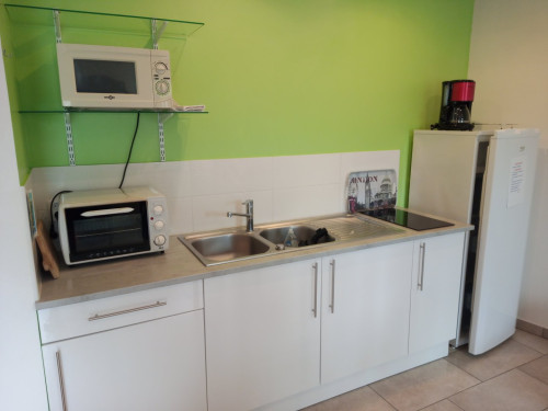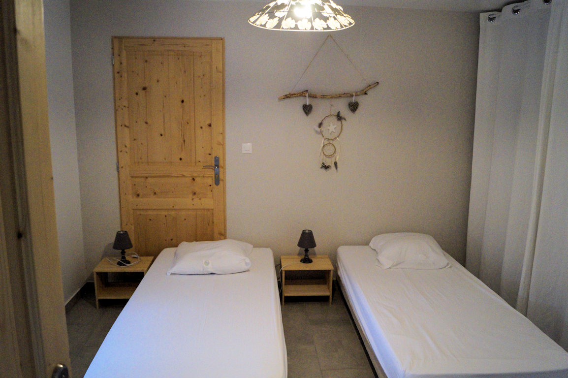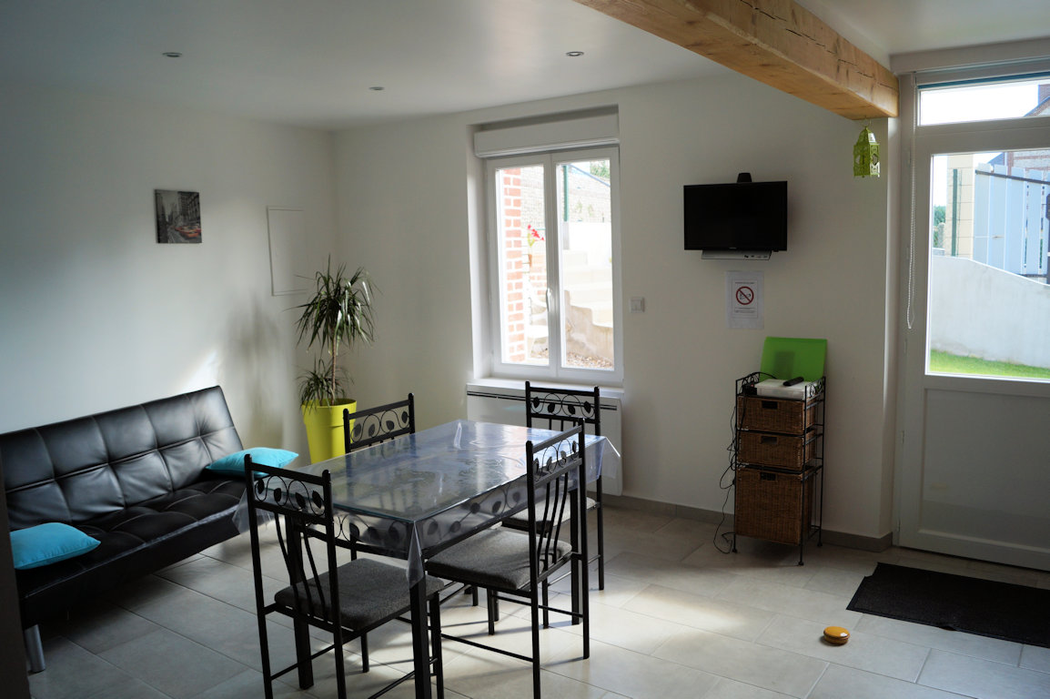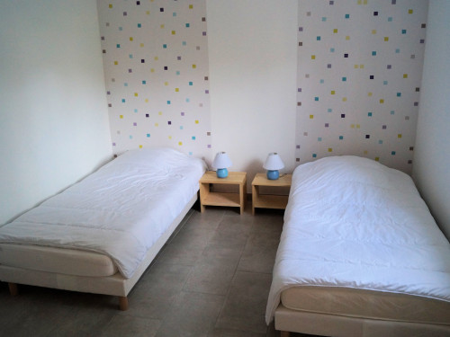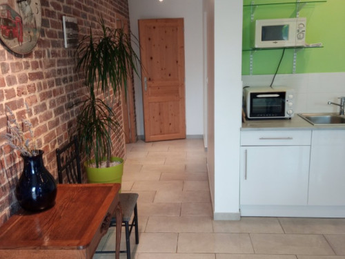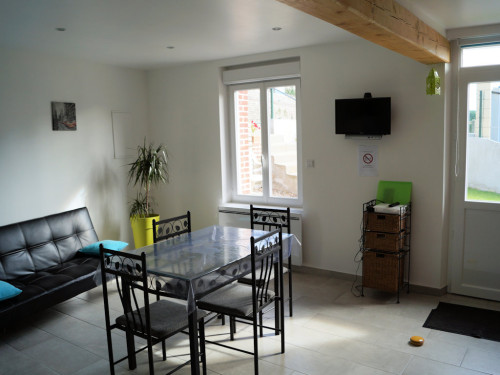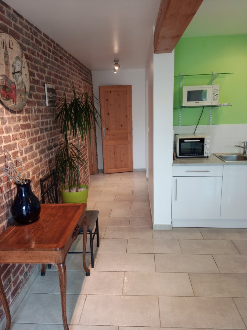 Gîte de 50 m ² mitoyen avec 2 autres gîtes, 2 chambres avec des lits de 1 personne convertible en lit double, cuisine équipé (mini-four, micro-ondes, plaque induction, Senséo, grille-pain …)