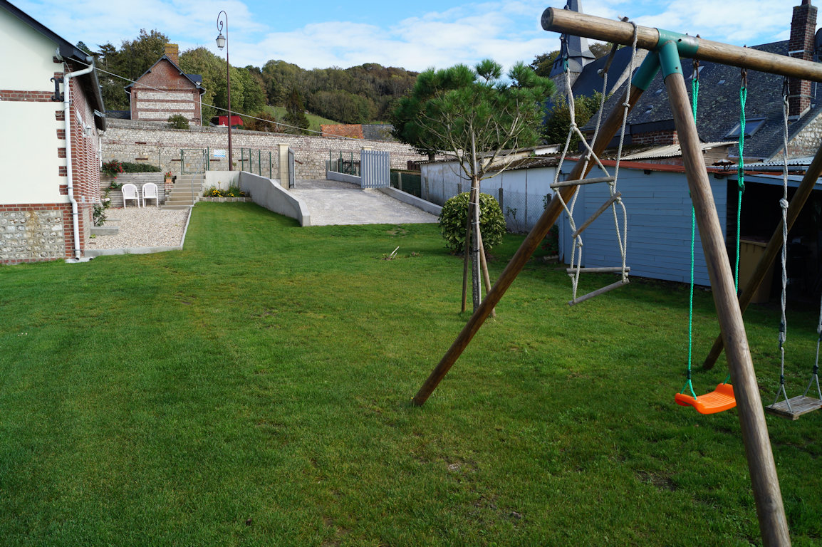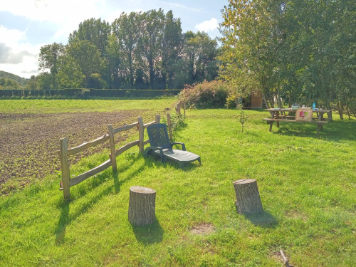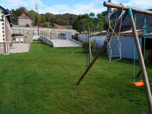 Douche à l'italienne grand format, machine à laver, WC indépendant, terrain clos avec une vue imprenable sur la vallée de la Durdent, table de pique-nique, barbecue, transat.