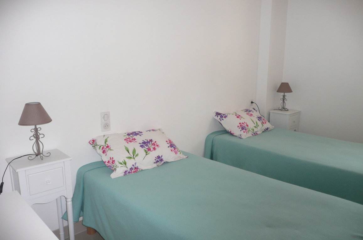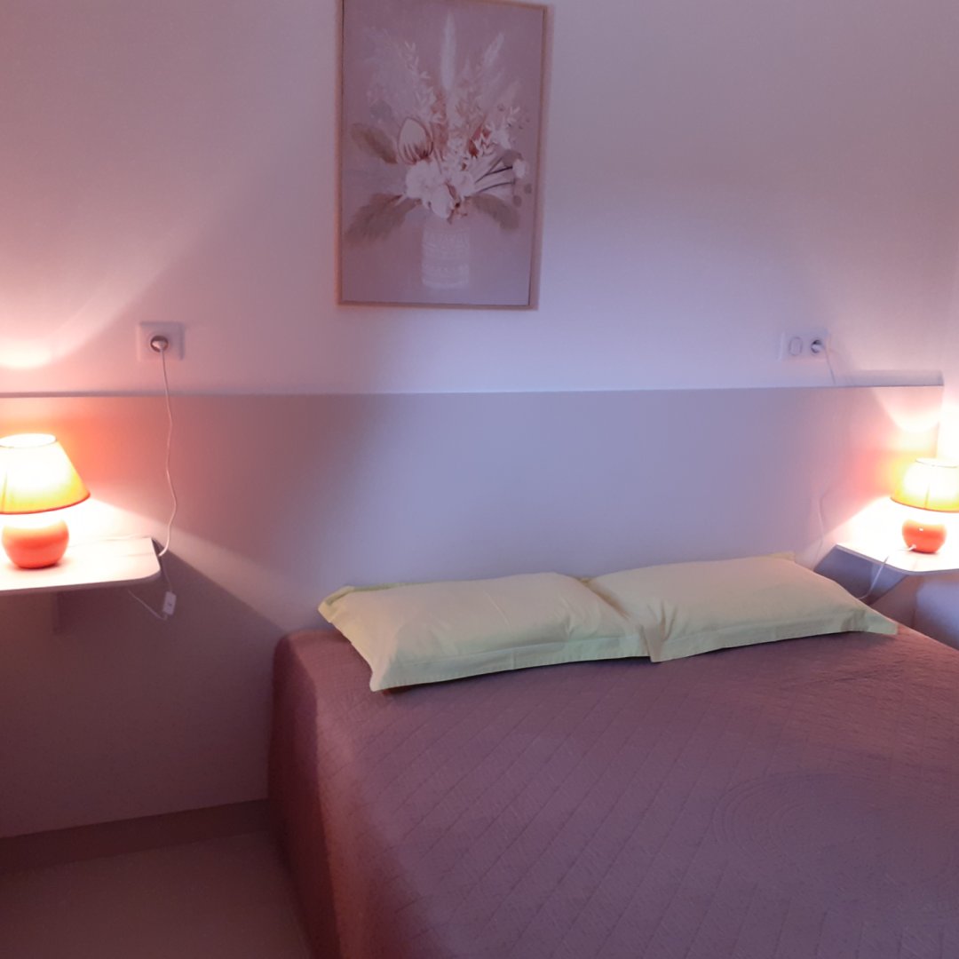 1 chambre avec lit 160 et une chambre avec 2 lits de 90, salle d'eau et WC séparé.
