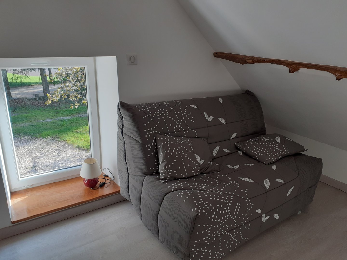 Mezzanine avec 1 canapé BZ convertible. Canapé, télévision écran plat.