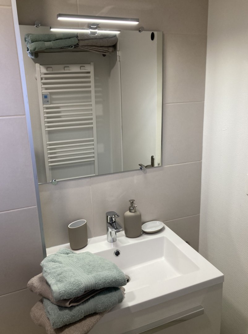 - 1 salle de bain (douche, lavabo et WC) au rez-de-chaussée
