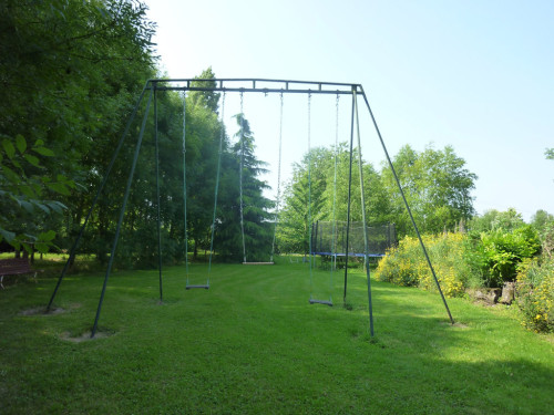 - Grand espace extérieur de 4000 m² avec grand portique/grand trampoline/ terrain de foot et badmington