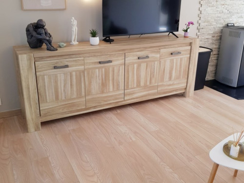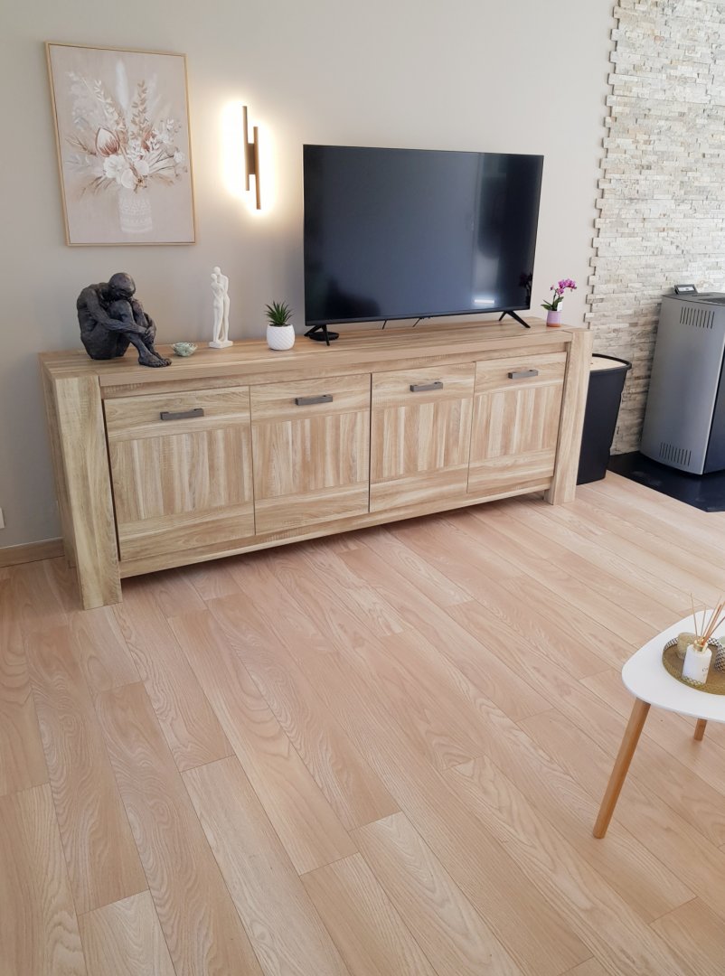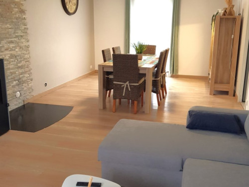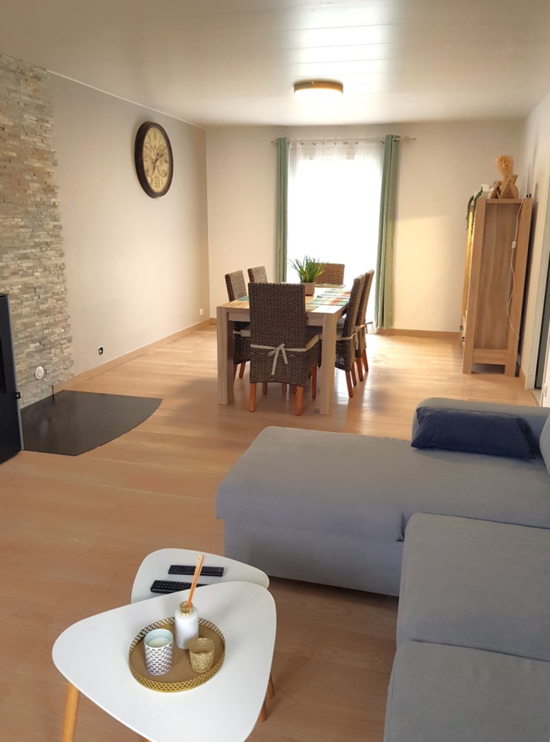 Cette maison comprend 3 chambres, cuisine équipée, salle salon avec poêle à granulés et canapé convertible, 1 salle de bains avec douche.