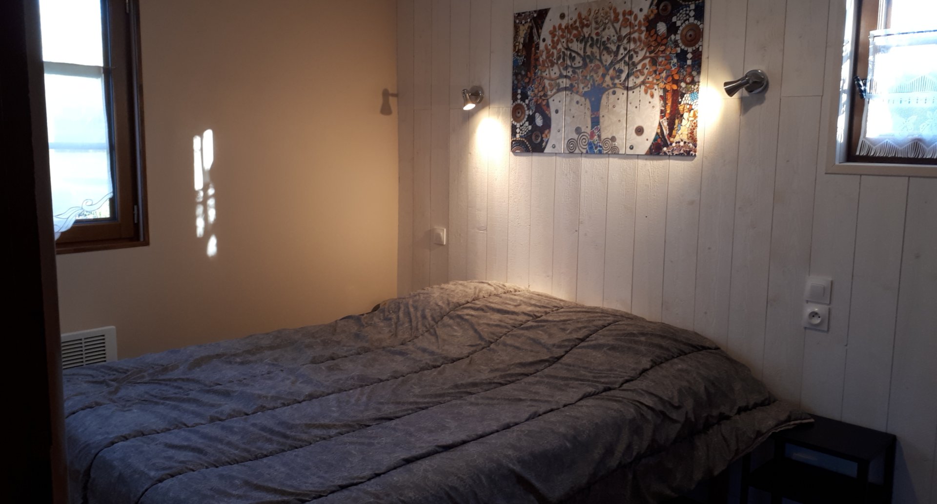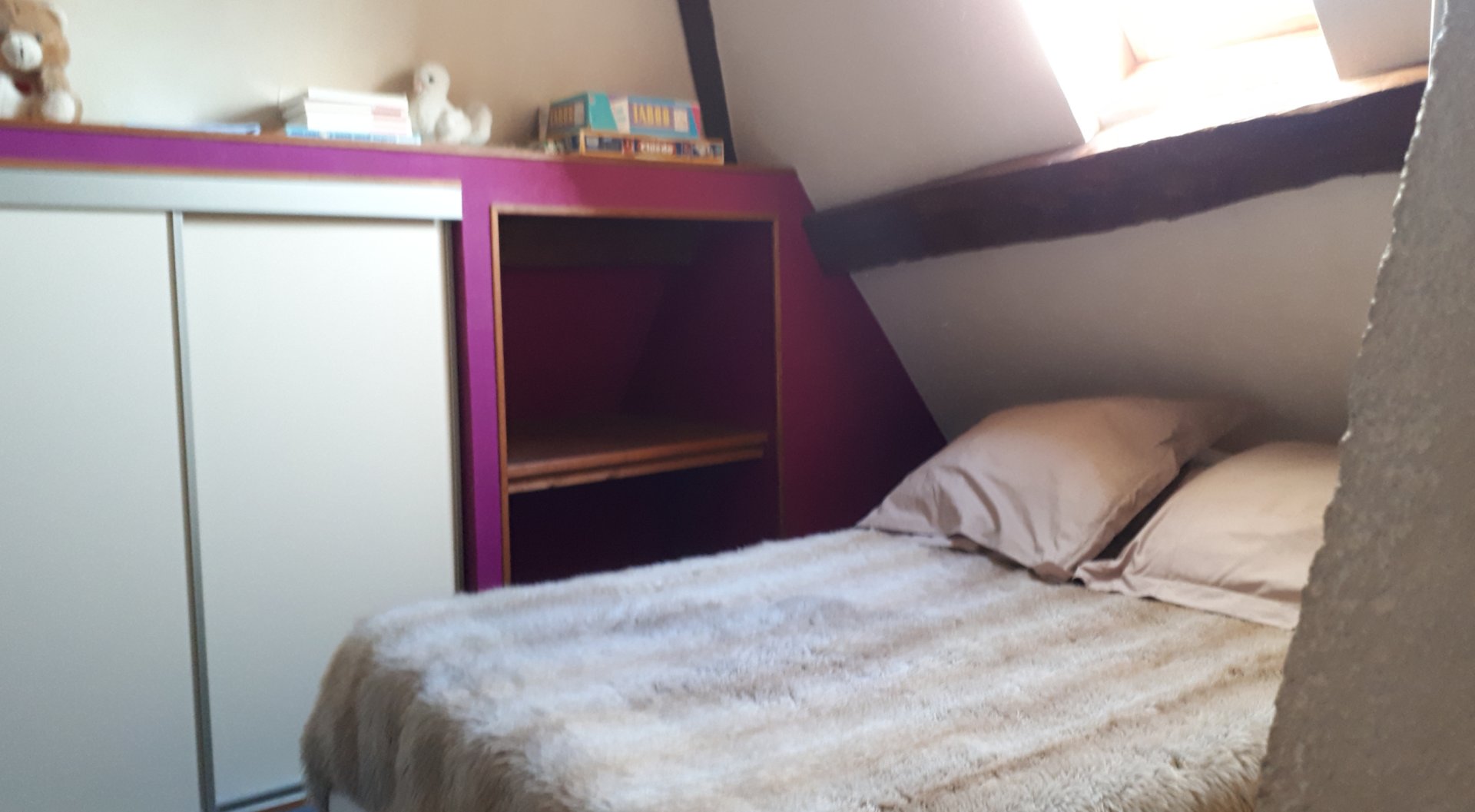 Elle dispose d'une chambre au RdC et une deuxième chambre au 1er étage (accès par escalier à pas décalés).