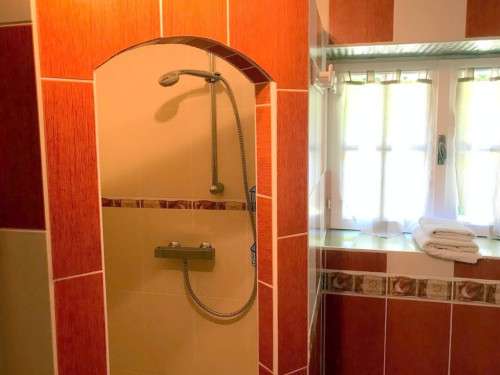Ce gîte dispose d'un vaste salon/salle à manger de 70 m² avec vue sur le parc arboré et l'étang de pêche, d'une cuisine entièrement équipée (plaque vitrocéramique, four, micro-ondes, réfrigérateur, lave-vaisselle, …), de deux salles de bain avec douche (une à chaque étage), de deux WC indépendants, d'une buanderie (avec lave-linge et congélateur), de quatre grandes chambres dont 1 au rez-de-chaussée (literie : 2 lits de 140x190, 1 lit de 160x190, 2 lits de 90x200, 1 lit parapluie) et d'une grande salle de jeux à l'étage.