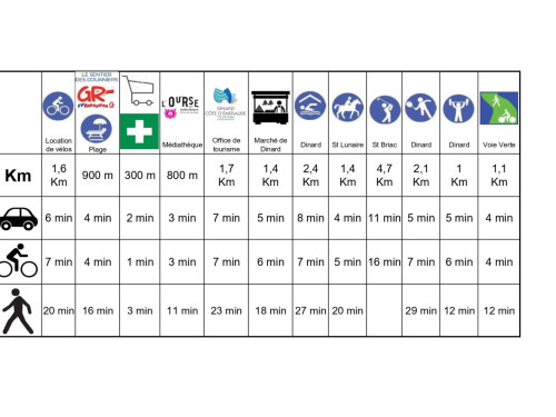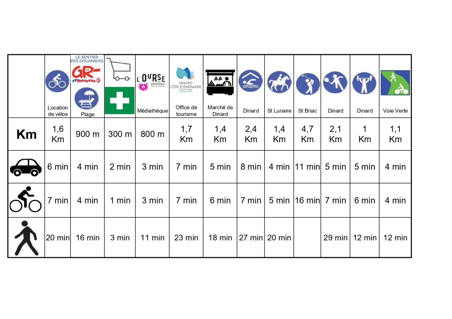 - à pied, vous êtes à 3 min des commerces, 15 min de la plage de Port Blanc et moins de 20 min du centre de Dinard