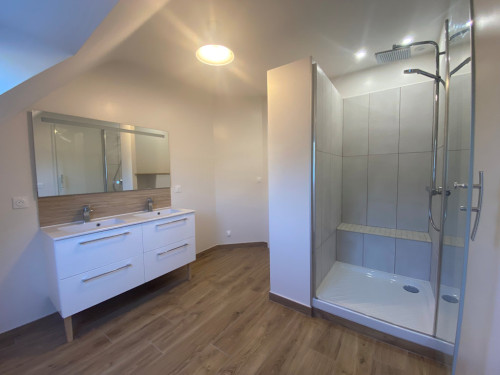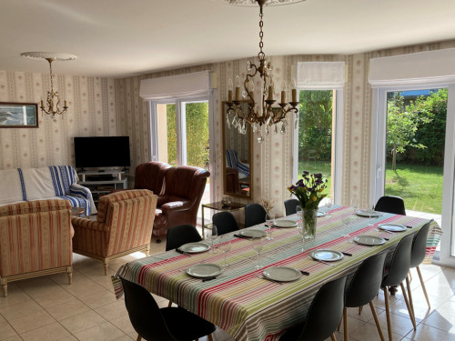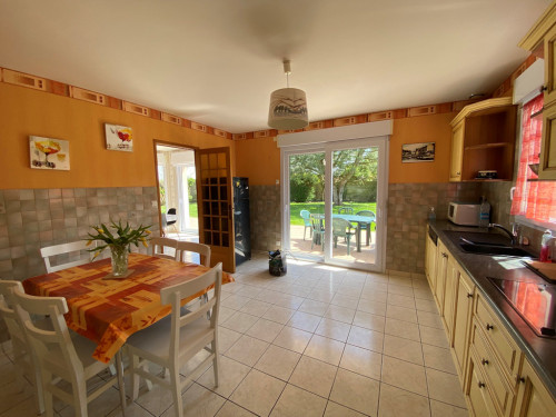 - cuisine et séjour ouvrent sur une grande terrasse orientée Sud (salon jardin, store banne, barbecue)