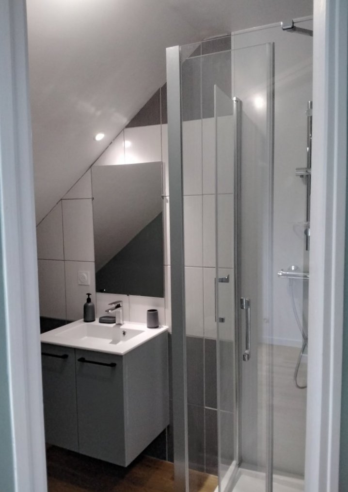 Salle de bains 1 : Douche à l'italienne, Vasque, Sèche-cheveux