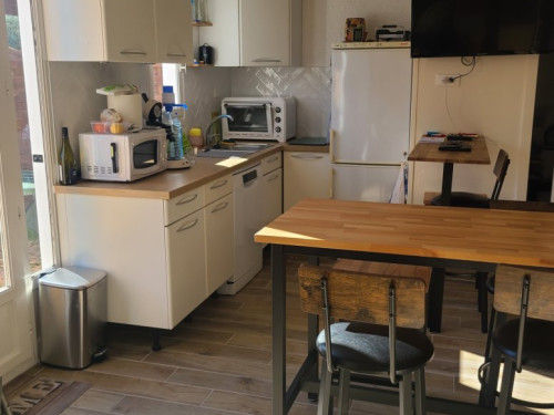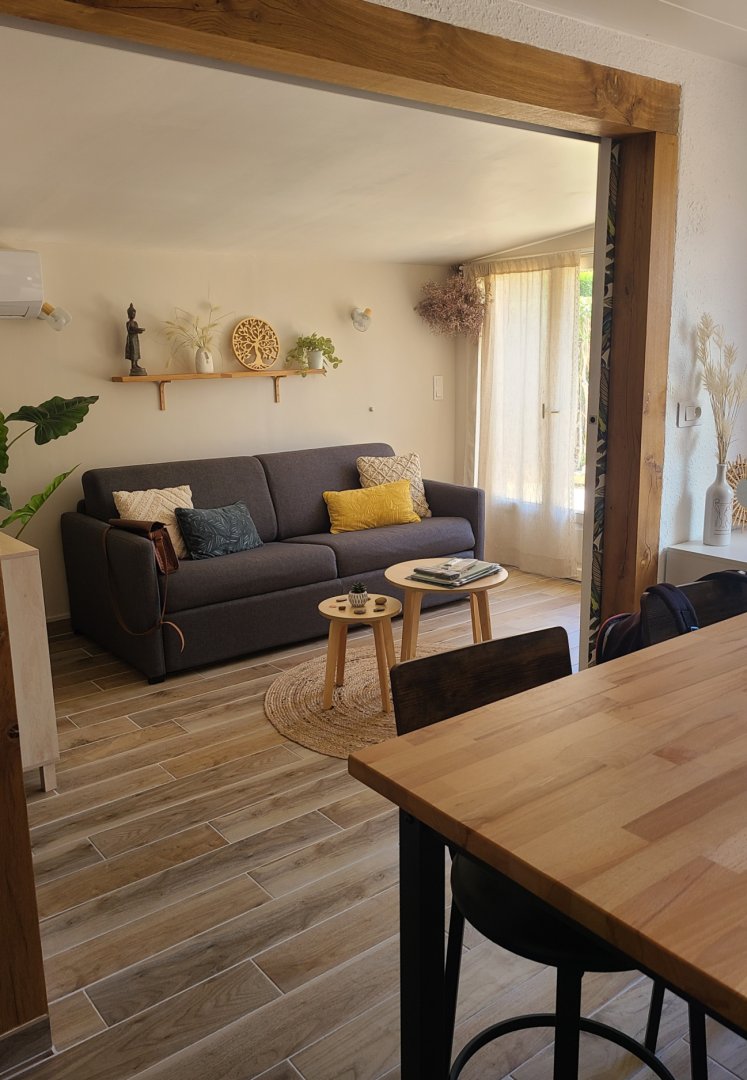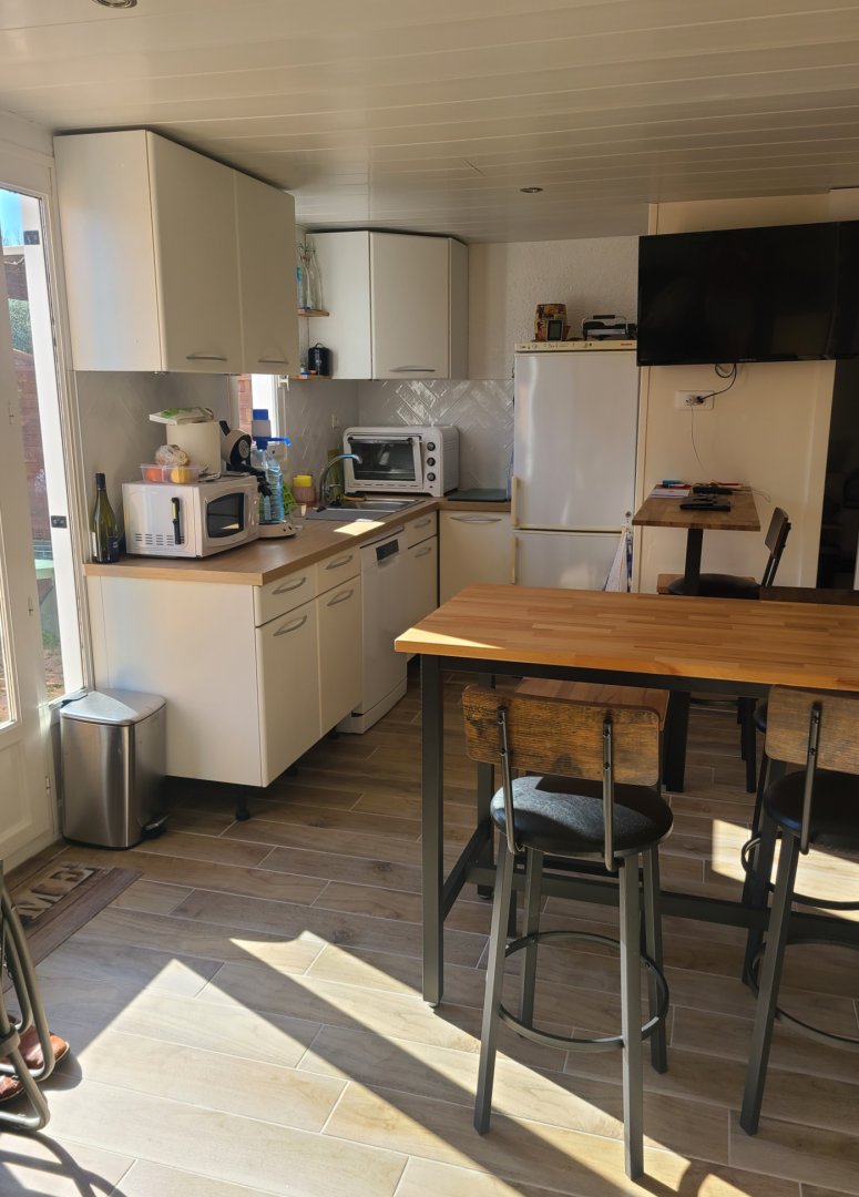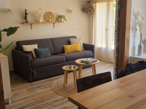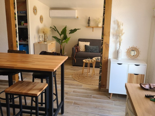 À Marseillan, petite maison climatisée entièrement rénovée et équipée avec extérieur aménagé, dans résidence calme et sécurisée, au bord de l'étang de Thau.
