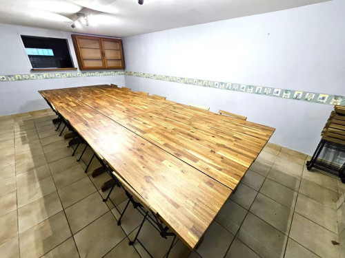 - Niveau 0 : sous-sol total semi enterré avec 2 pièces et une cuisine. Idéal pour réunion, soirée (festive mais raisonnable !)