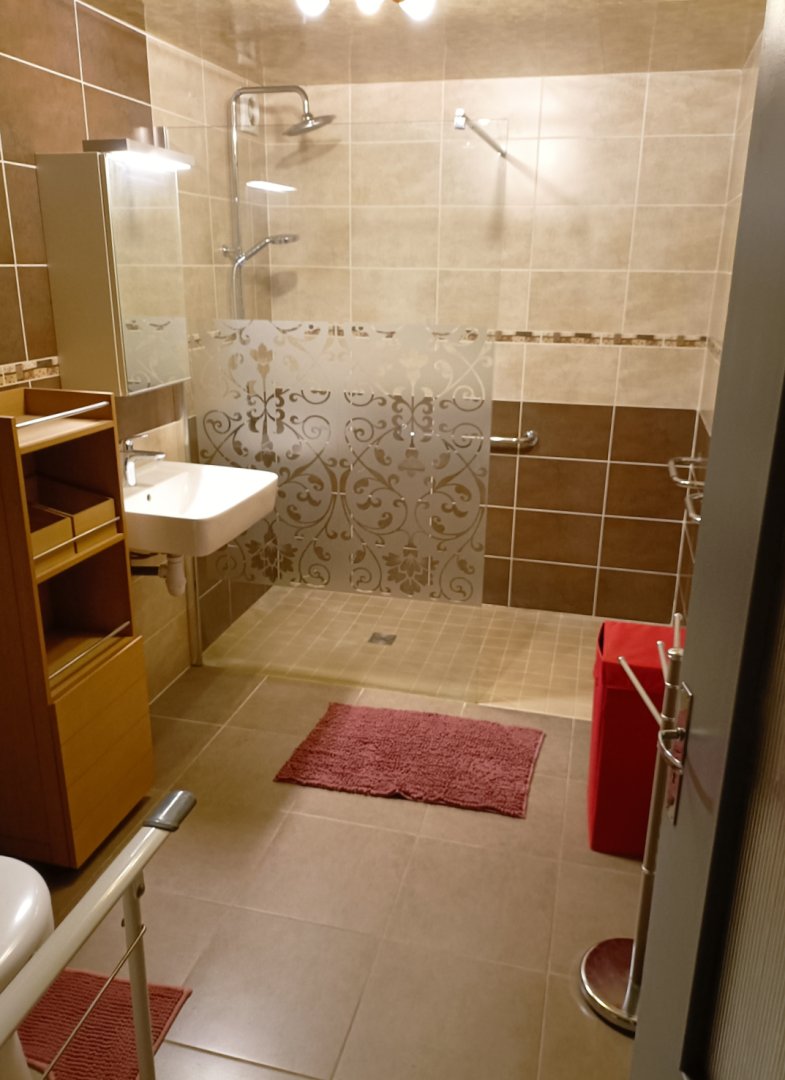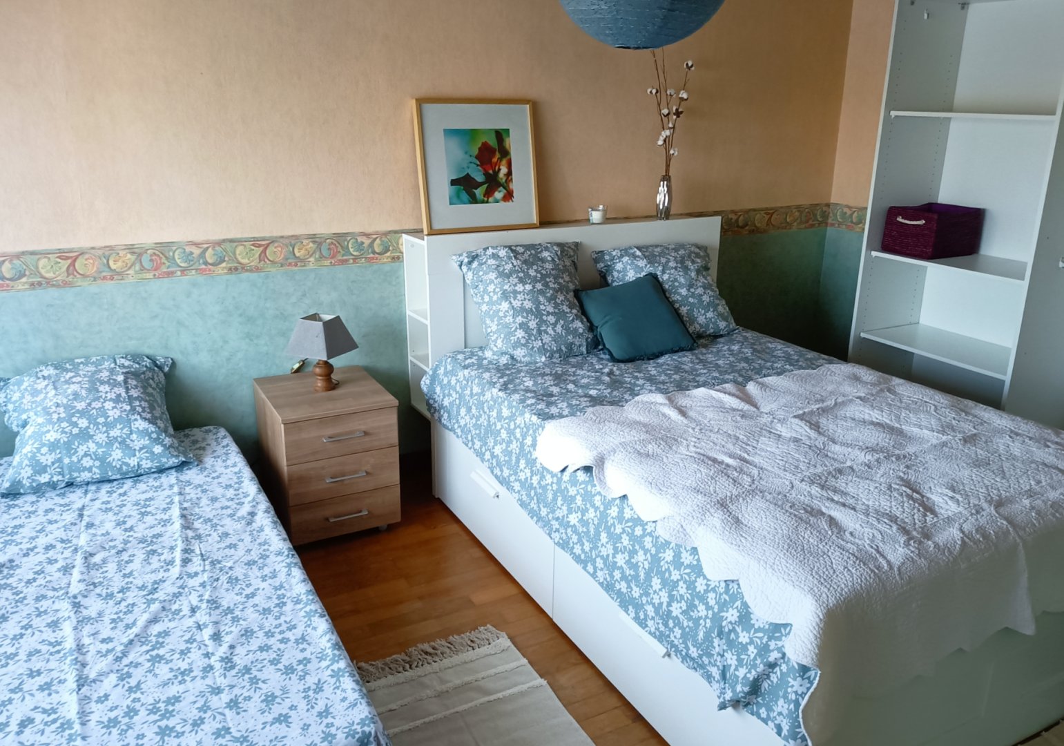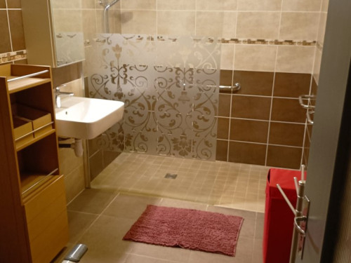 Entrée , cuisine équipée, salon, salle d’eau avec douche à l’italienne (avec barres d’appui), WC (avec barre d’appui), une chambre lit 140x200 et 1 chambre 1 lit 140x200 + 1 lit 90x190 (possibilité d’ajouter 1 lit enfant ou bébé).