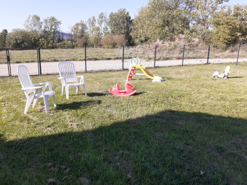 Équipement : lave-vaisselle, four, plaque vitro, micro-ondes, cafetière dosettes Tassimo, frigo, bouilloire, appareille à raclette, TV, planche et fer à repasser, sèche-cheveux, salon de jardin, espace extérieur clos d’environ 300 m².