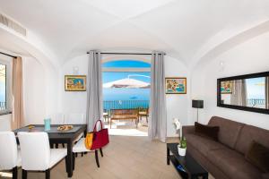 The apartment with a terrace and sea views features 1 bedroom, a living room, a flat-screen TV, an equipped kitchen with a dishwasher and an oven, and 1 bathroom with a hot tub. A private entrance leads guests into the apartment, where they can enjoy some wine or champagne and chocolates or cookies. The property has an outdoor dining area.