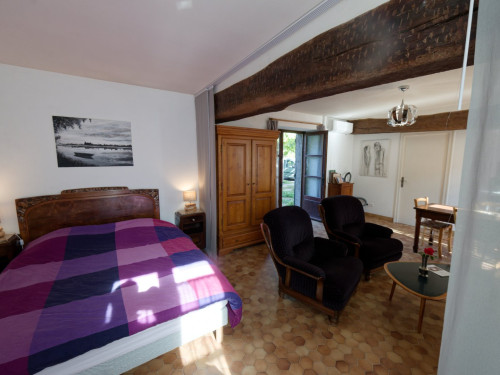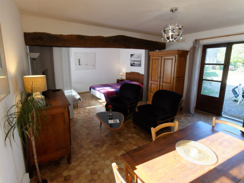 Dans la maisonnette (48 m²) qui donne sur le jardin, vous profiterez d'une cuisine équipée, d'une salle de bain avec une baignoire et d'un vaste séjour accueillant jusqu'à 3 voire 4 personnes (un lit double 160 cm, un lit simple 100 cm, un lit d'appoint 80 cm). Sa décoration sobre mêle le neuf et l'ancien avec œuvres d'artistes du village. Vous pourrez apprécier son charme qui a traversé les âges depuis mon arrière-grand-mère Clémentine.