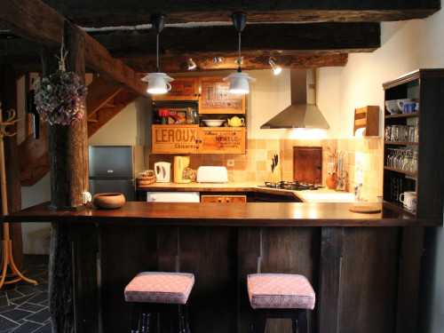 On the day side, the large ground floor, friendly and warm, brings together a comfortable corner living room, a fully equipped kitchen with undeniable charm, as well as a dining area that will be able to heat up the wood stove for mild summer evenings. winter.