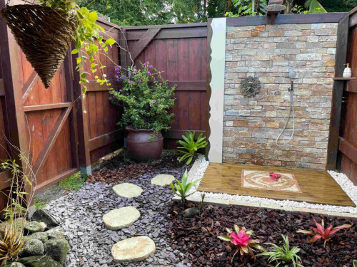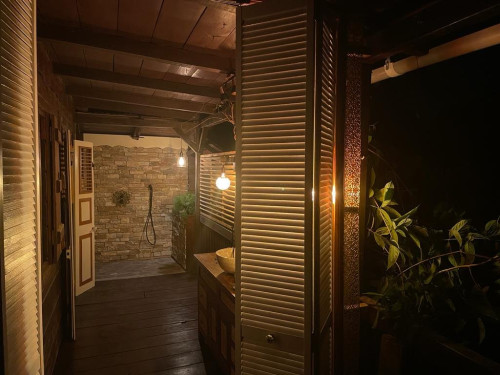 - deux chambres avec lit double, toilette et salle de douche privées