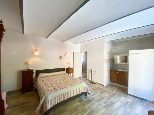 Au rez-de-chaussée une chambre parentale (lit 160) avec salle d'eau privée. wc. Etage climatisé : 4 chambres spacieuses (2 lits 160 ; 1 lit 140 ; 3 lits 90), 2 salles d'eau avec douche à l'italienne ; 2 wc ; Vous disposerez également d' un espace lecture.