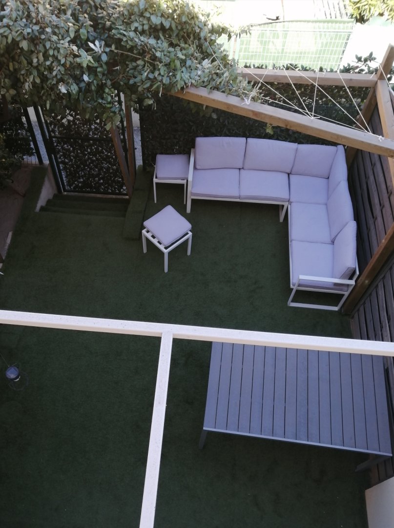 Vous disposez d’une terrasse privative de 20 m² exposée Ouest, clôturée et à l’abri des regards, équipée de table, chaises et fauteuils de jardin, plancha électrique, étendage et parasol.