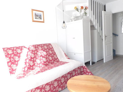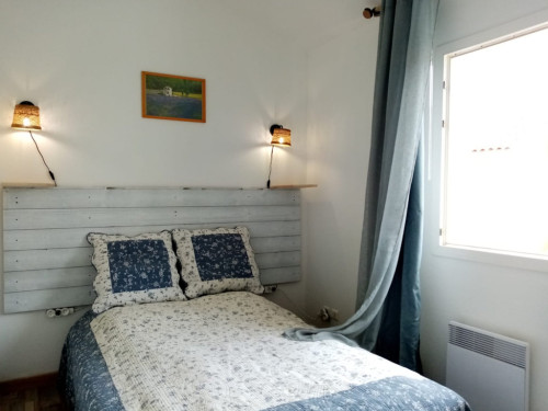 L’étage propose une chambre à l’ambiance "Provence" équipée d’un lit double 140x190, penderie et écran plat, un coin nuit équipé de 2 lits superposés 90x200 et d’un rangement, salle d’eau avec lavabo sur plan vasque, douche et WC.