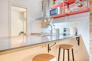 Este apartamento con aire acondicionado consta de 1 dormitorio, una sala de estar, una cocina totalmente equipada con horno y cafetera, y 1 baño con ducha y artículos de aseo gratuitos. Hay toallas y ropa de cama en el apartamento.