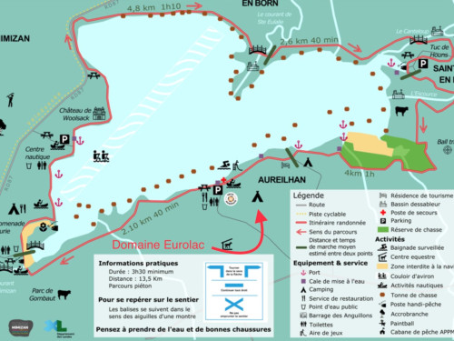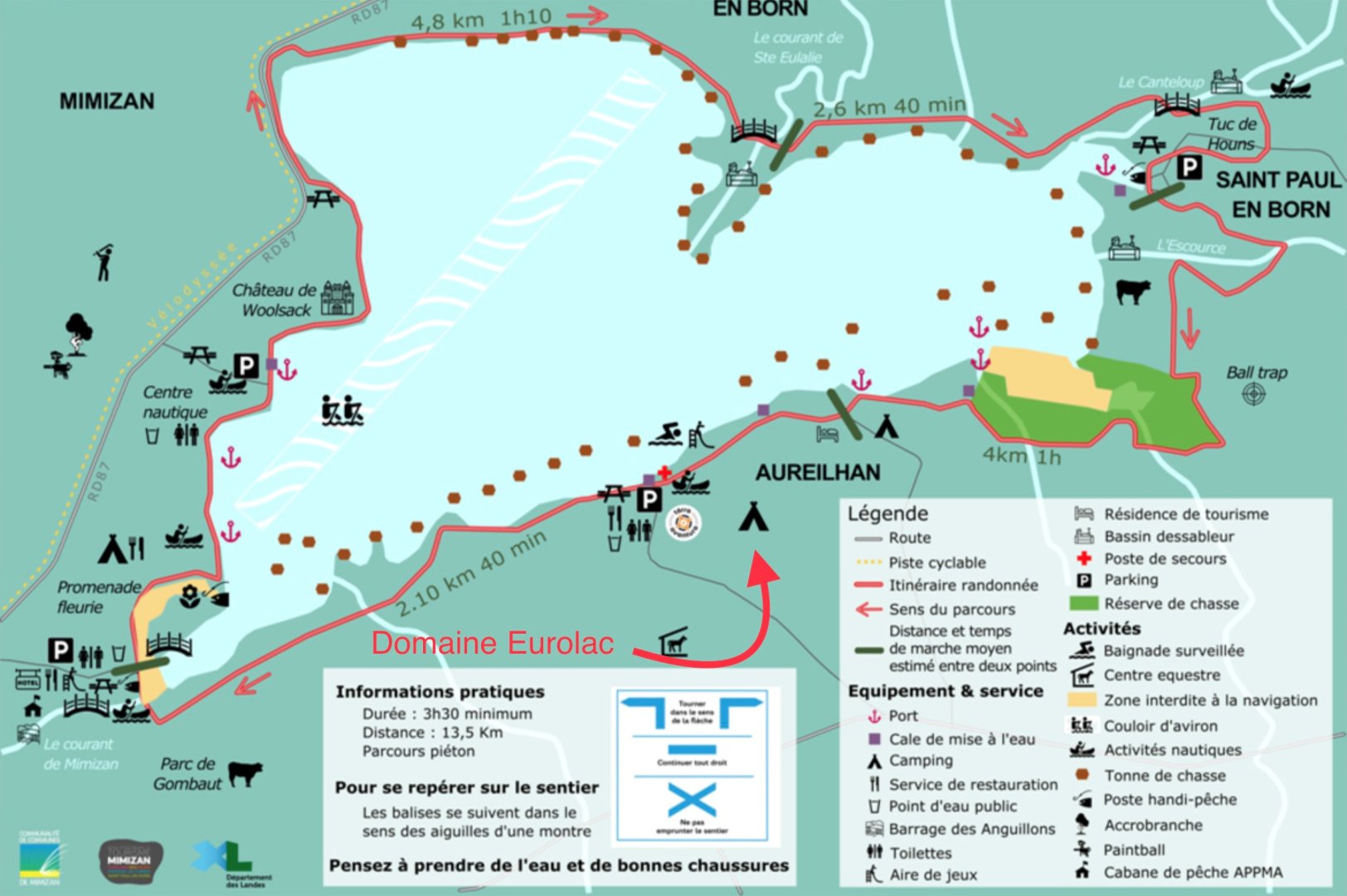 Situé au bord du lac d'Aureilhan et à proximité de Mimizan, le camping 4* "Domaine Eurolac" se niche en bordure de forêt landaise. Longé par une piste cyclable (Océan à 10 km), c'est une destination idéale pour profiter des attraits de l'océan tout en savourant le calme de la forêt landaise.