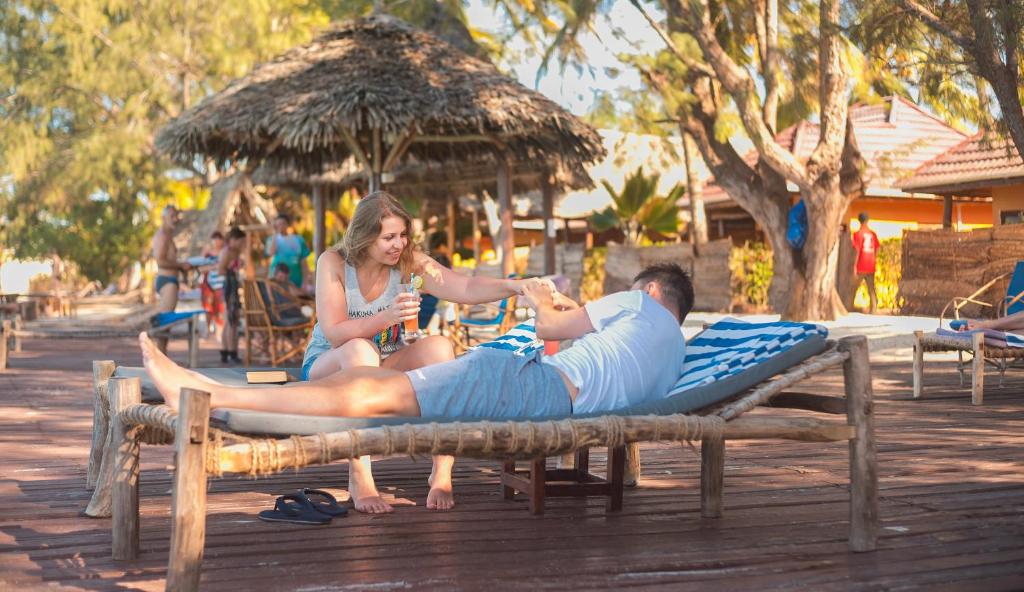 Fresh local Swahili seafood specialities are served daily in the à la carte restaurant along with other international and vegetarian options. The bar is located on the beach and provides drinks, games and music while relaxing in a couch or hammock.